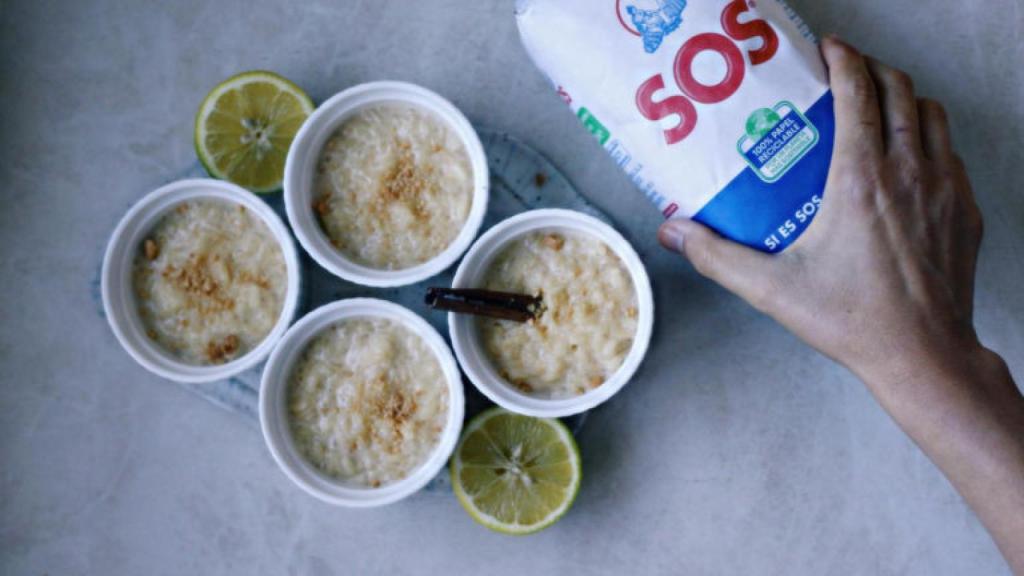 Primero infusionamos la leche con la piel de limón y la canela. Después, lavamos el Arroz SOS Redondo para retirar el exceso de almidón. En este paso debemos tener cuidado de usar solo la parte amarilla de la piel del cítrico. Para lavar el arroz, lo más cómodo es ponerlo en un colador de malla fina y enjuagarlo bajo un chorro de agua fría hasta que el agua salga limpia.