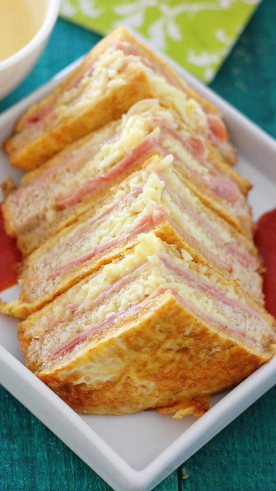 Inspirado en el Croque Monsieur, en Estados Unidos empezó a popularizarse el sándwich Montecristo, relleno de jamón, queso y salsa de mostaza, que solía servirse rebozado en azúcar y acompañado de mermelada como si de una torrija se tratase. Yo personalmente prefiero prescindir del azúcar y servirlo con la salsa de mostaza y un poco de kétchup, pero os lo dejo como idea.