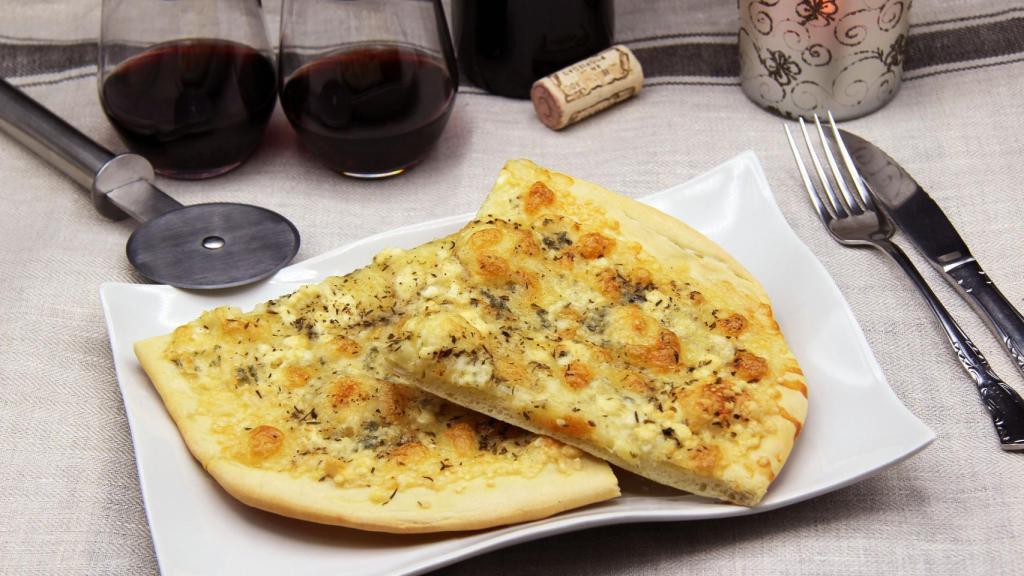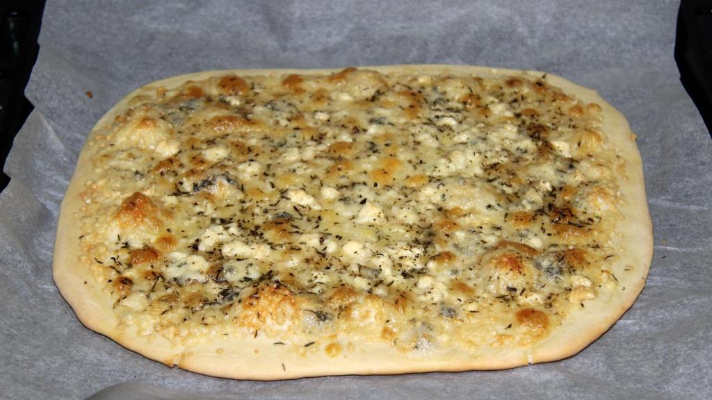 Pizza cuatro quesos casera perfecta para las noches de peli, mantita y sofá