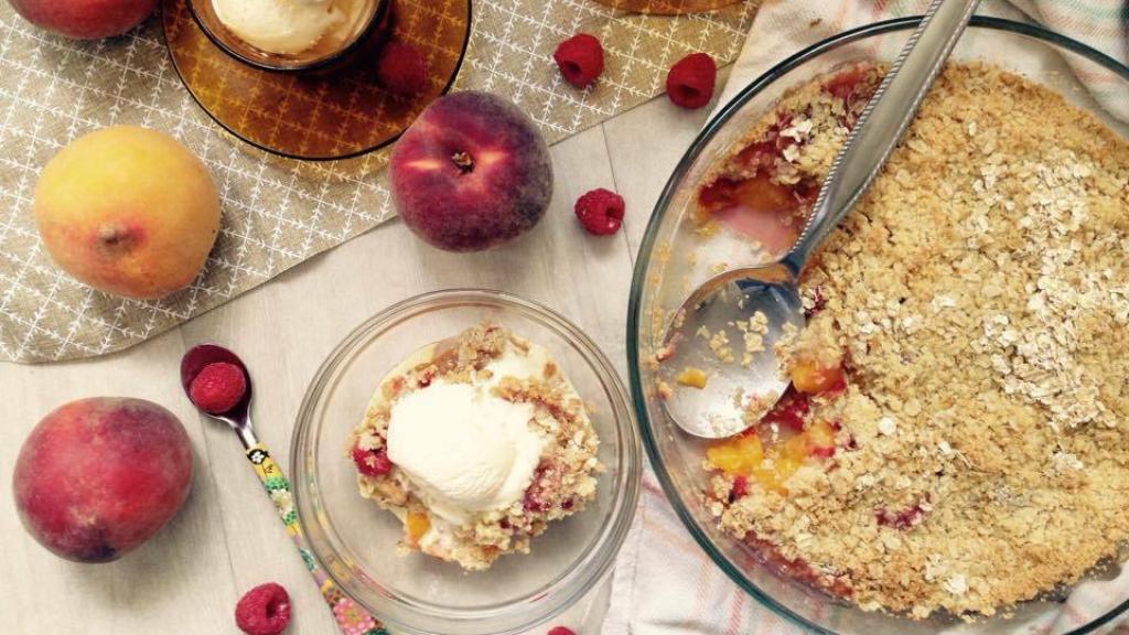 Que levante la mano quien tenga una triste lata de melocotón en almíbar esperando impacientemente desde las navidades pasadas en la alacena de casa. No te preocupes, ¡tu lata de melocotón y tú estáis de suerte! Hoy te traigo una receta fácil, rica, con pocos ingredientes y perfecta para cualquier ocasión este verano. Un crumble de melocotón y frambuesas.
