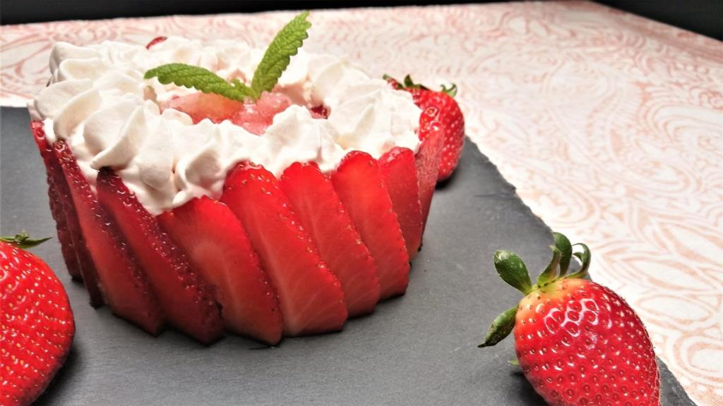 Cómo hacer un timbal de fresas con nata con su granizado de fresa