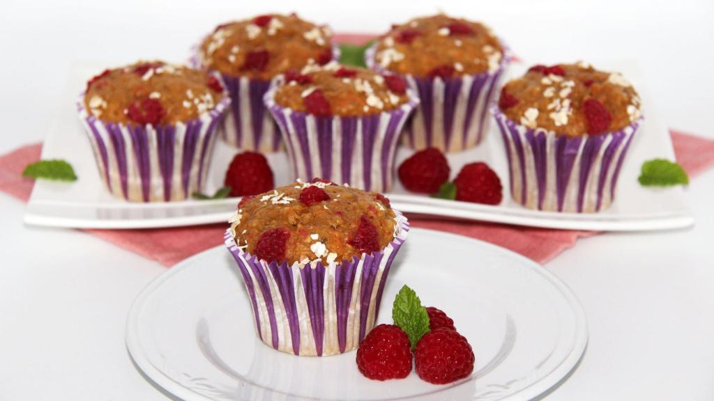 Muffins de zanahoria, avena y frambuesas para darle color al desayuno