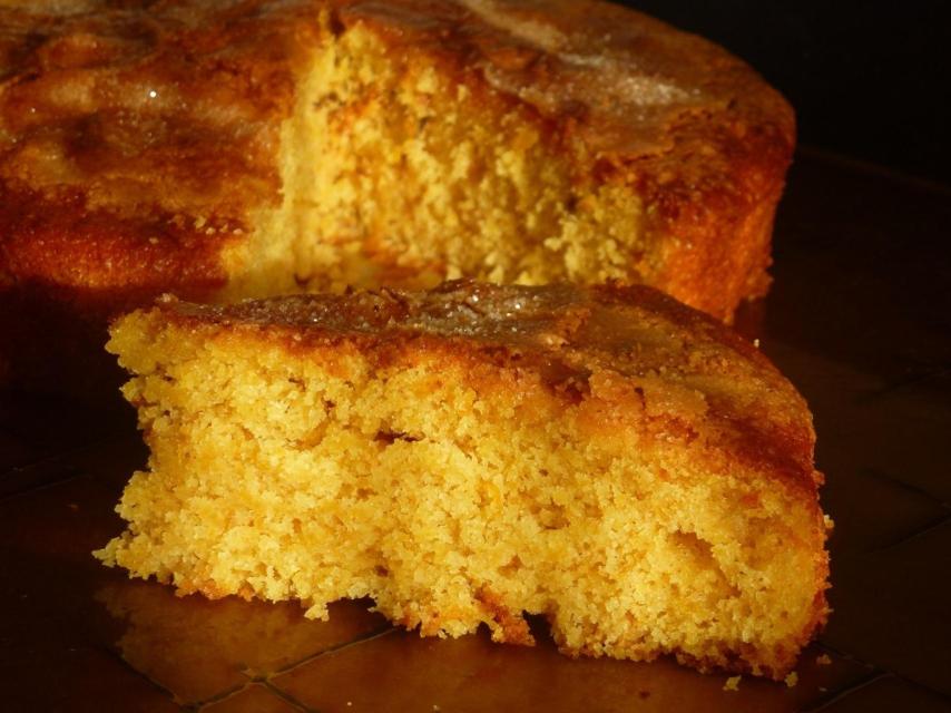 Un bizcocho sencillo y sin florituras que recuerda a una tarta de Santiago en el sabor, pero con una textura más ligera.