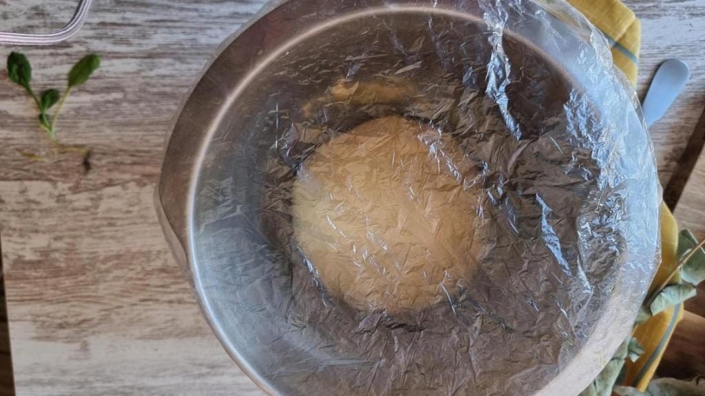Tapar con papel film, colocar en un bol previamente engrasado y dejar fermentar en un sitio seco y cálido hasta que doble su volumen. Un buen truco si hace mucho frío en casa es meter el bol en el horno con la luz encendida.