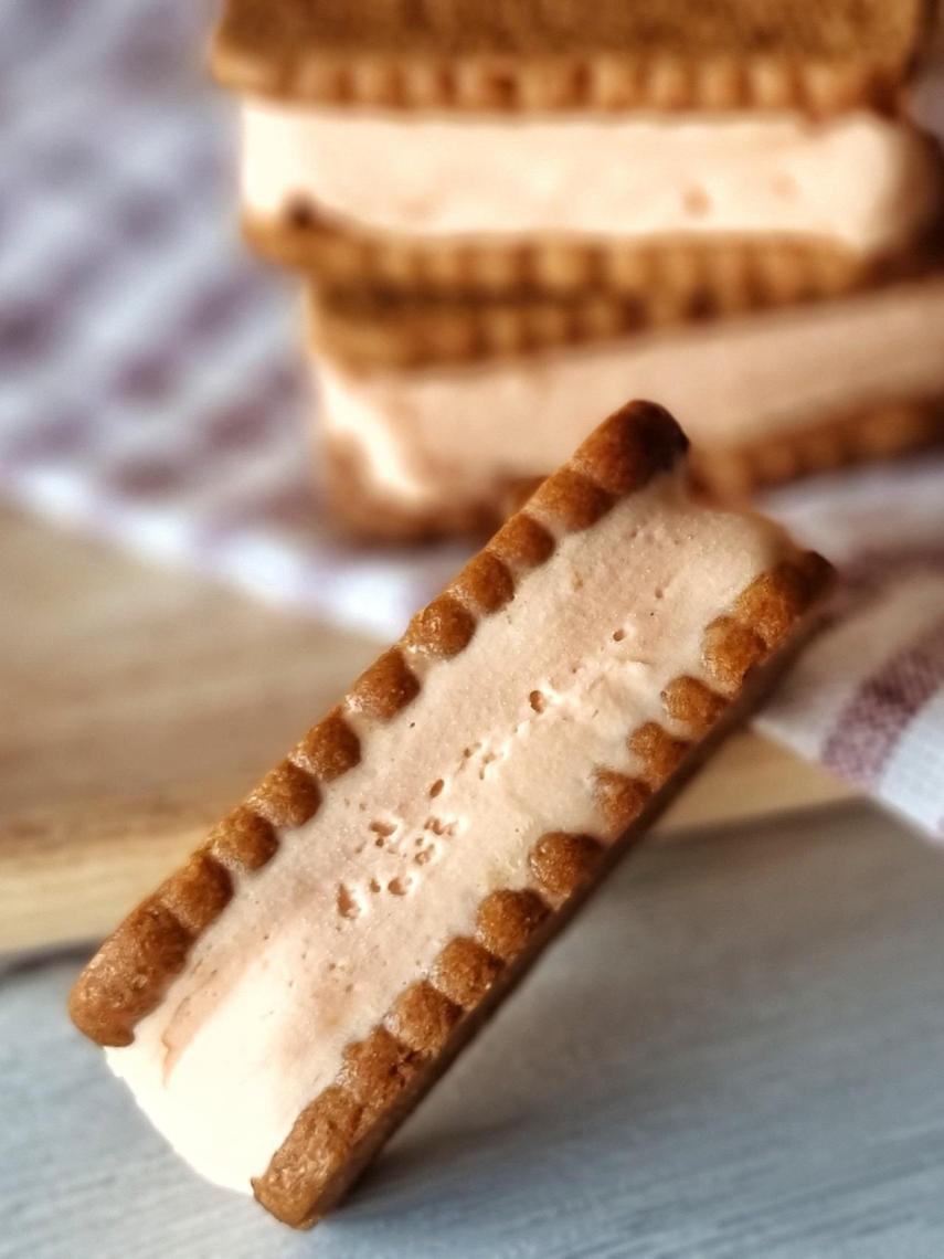 Por regla general, no suelo recomendar que hagáis helados en casa pero en esta ocasión he encontrado una mezcla que funciona casi sola y a la que tendréis que cuidar muy poco para conseguir resultados estupendos. Un helado de mango y coco perfecto para rellenar un sándwich, para el que utilizaremos las míticas galletas Lotus especiadas. Sí, esas que sirven con el café en muchos sitios y nos pueden recordar a Navidad. Que se encuentran en supermercados y le darán un rollo muy especial a nuestro sándwich helado.