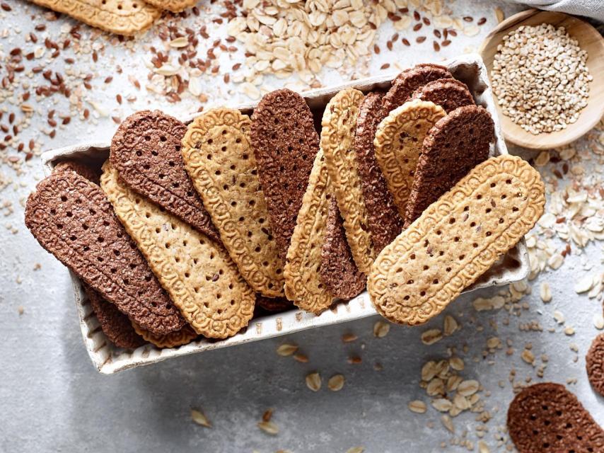 Trituramos las galletas Fibroki y los cereales de avena Dietesse-3 con la ayuda de un robot de cocina o con el accesorio picador de una batidora. Una vez triturado todo, colocar esta mezcla seca en un bol. Añadir la mantequilla a temperatura ambiente y mezclar bien con las manos hasta tener una masa de textura homogénea