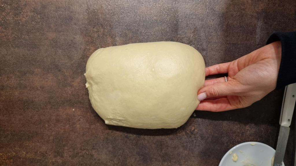 Cuando la masa ya esté perfecta haremos una bola con ella, lo más prieta posible, y la pondremos en un bol aceitado. Tapar el bol con film y dejar fermentar unas 6 horas hasta que doble el volumen.
