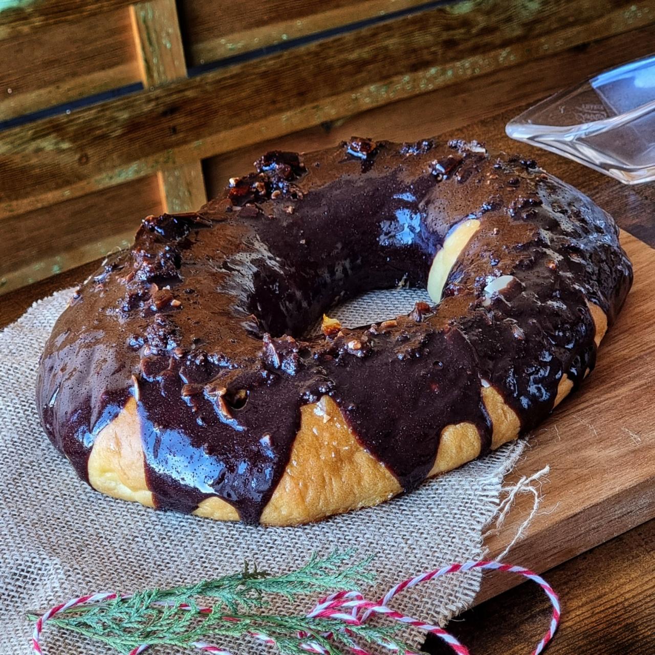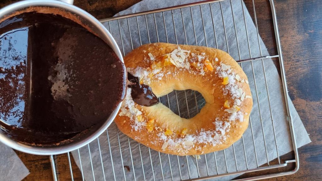 Roscón de Reyes glaseado con chocolate, una receta muy apetitosa