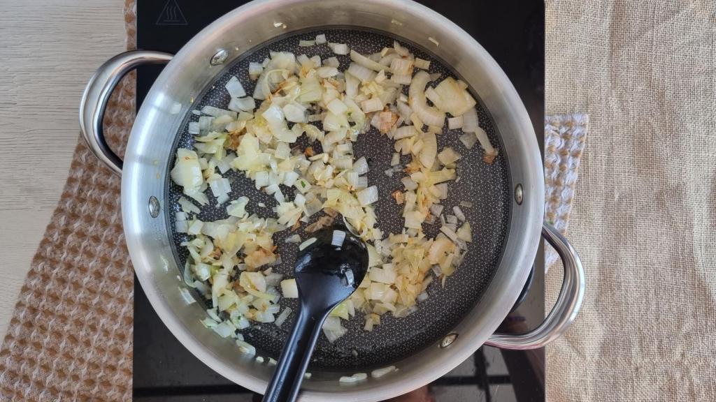 Cortar la cebolla y pocharla