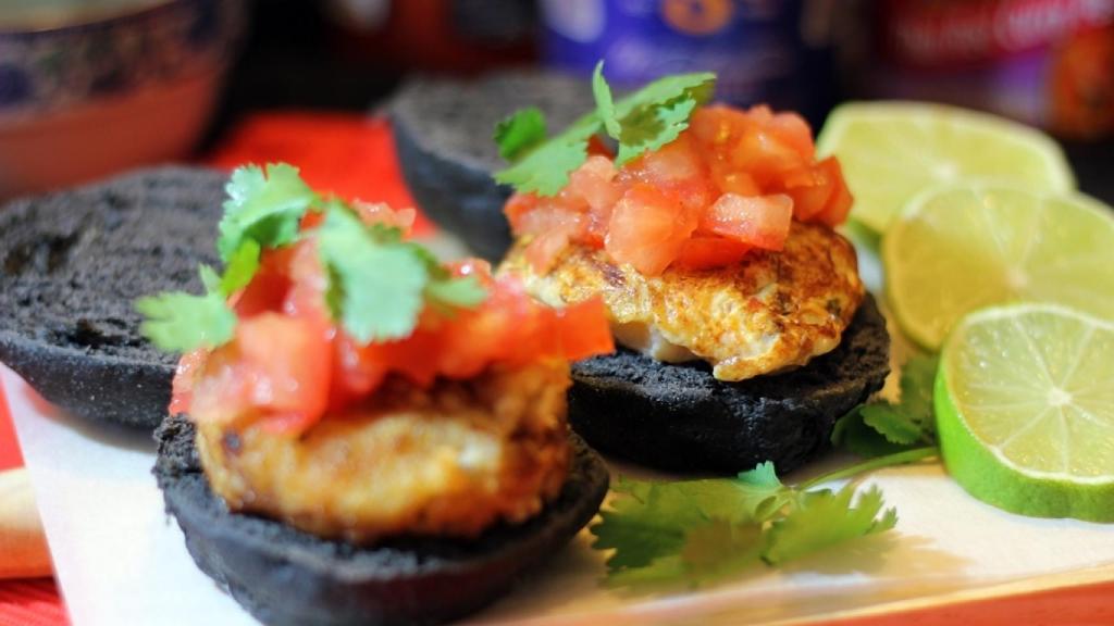 Receta fácil con explicación paso a paso para preparar una hamburguesa de pescado estilo Thai servida en pan de tinta de calamar.