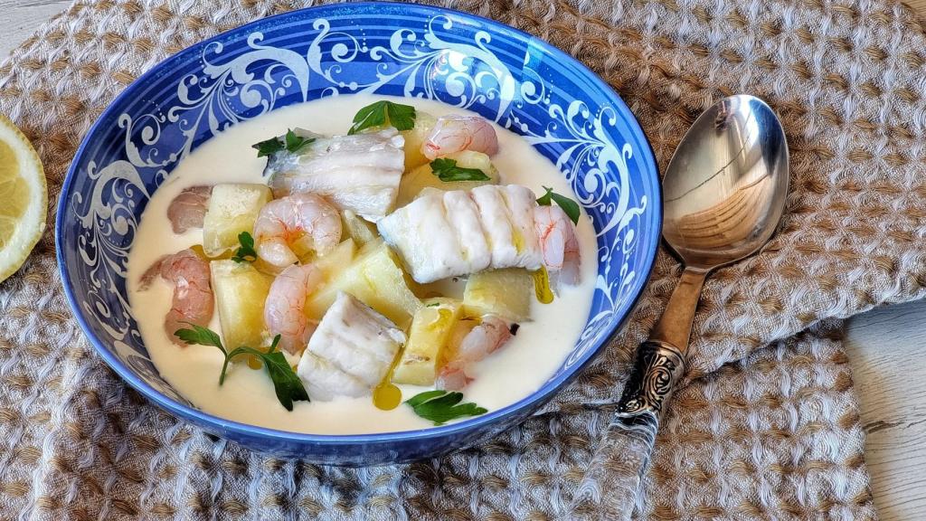 Originario de Málaga, pero también con sus versiones y nombres en otras zonas de Andalucía, el gazpachuelo es una sopa popular de pescadores que tiene la peculiaridad de mezclar el caldo de pescado con patatas y una mayonesa. Tradicionalmente, de hecho, era una sopa que aprovechaba las claras del huevo para encontrarlas picaditas en la sopa y la yema servía para ligar la mayonesa.