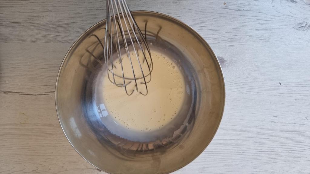Cuando las patatas ya estén cocidas, apartar del fuego y dejar que el caldo se temple. Si vertemos el caldo caliente sobre la mayonesa ésta se cortará.