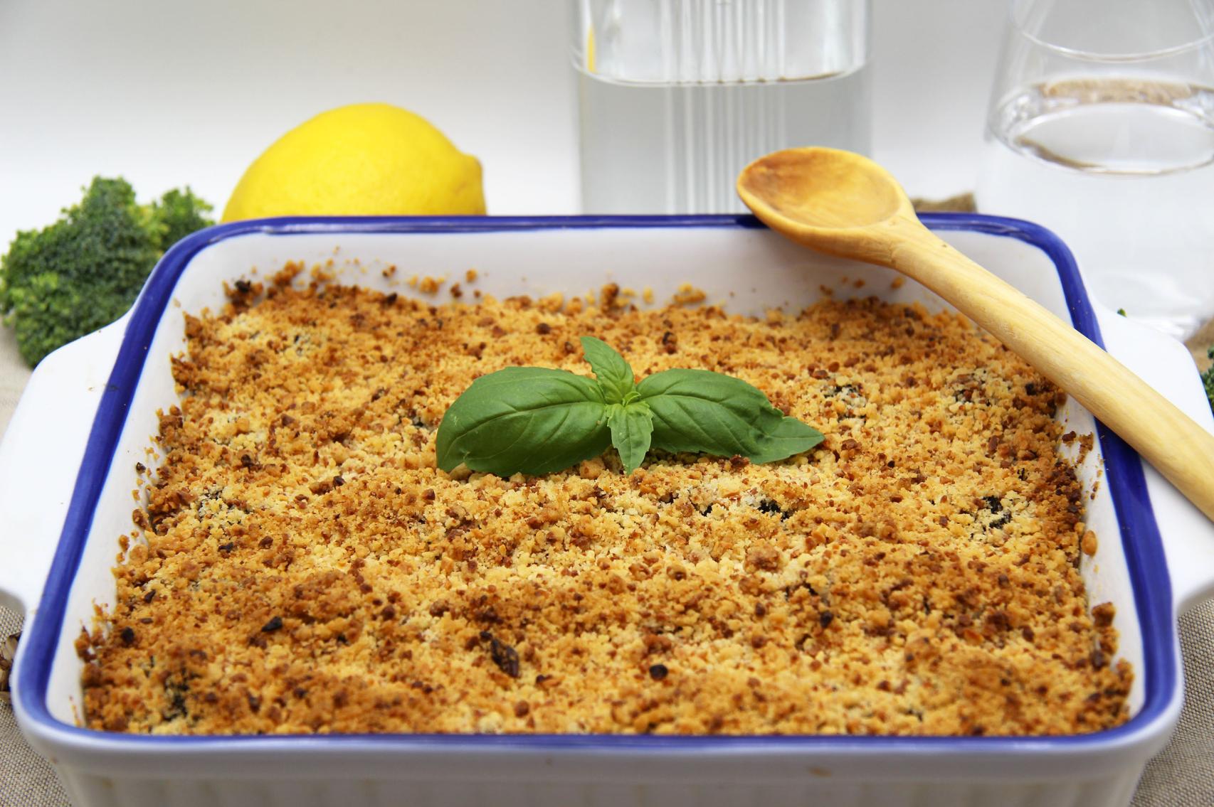 Te enseñamos cómo preparar un Crumble de brócoli y almendras, una receta tan exquisita que se te olvidará que es a base de verduras.