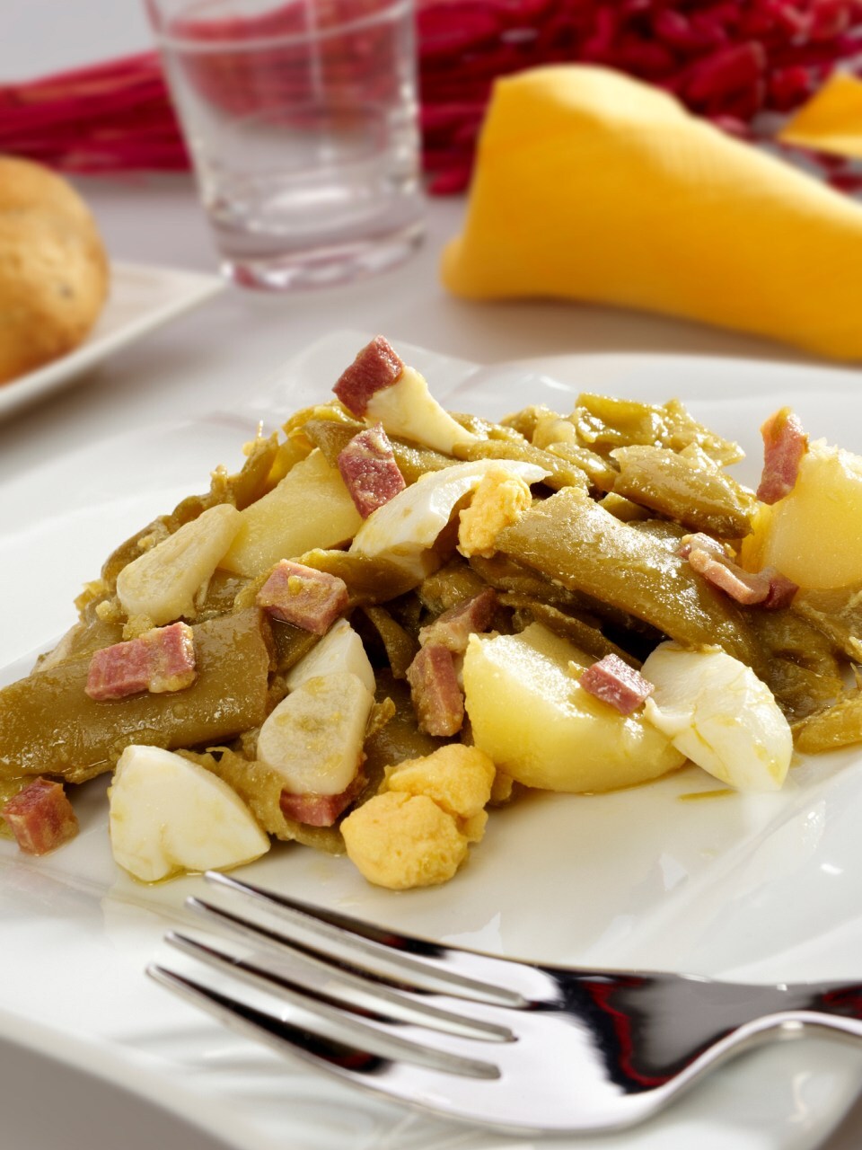 Judías verdes con patatas, bacon y huevo: fáciles, baratas y sabrosas