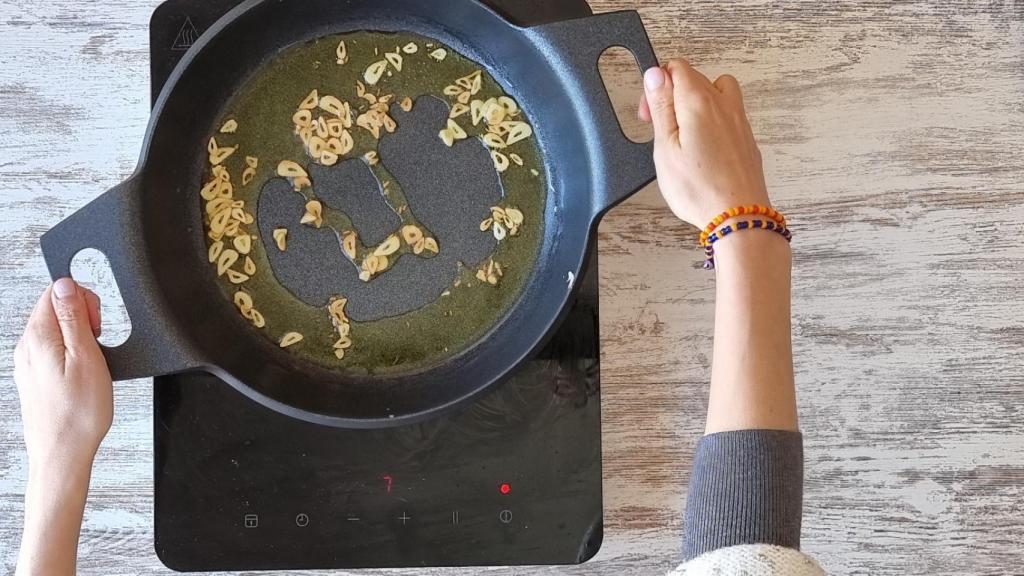 Dorar los ajitos fileteados en una sartén con el aceite suave, con cuidado porque el ajo se quema muy fácil y da un toque amargo.