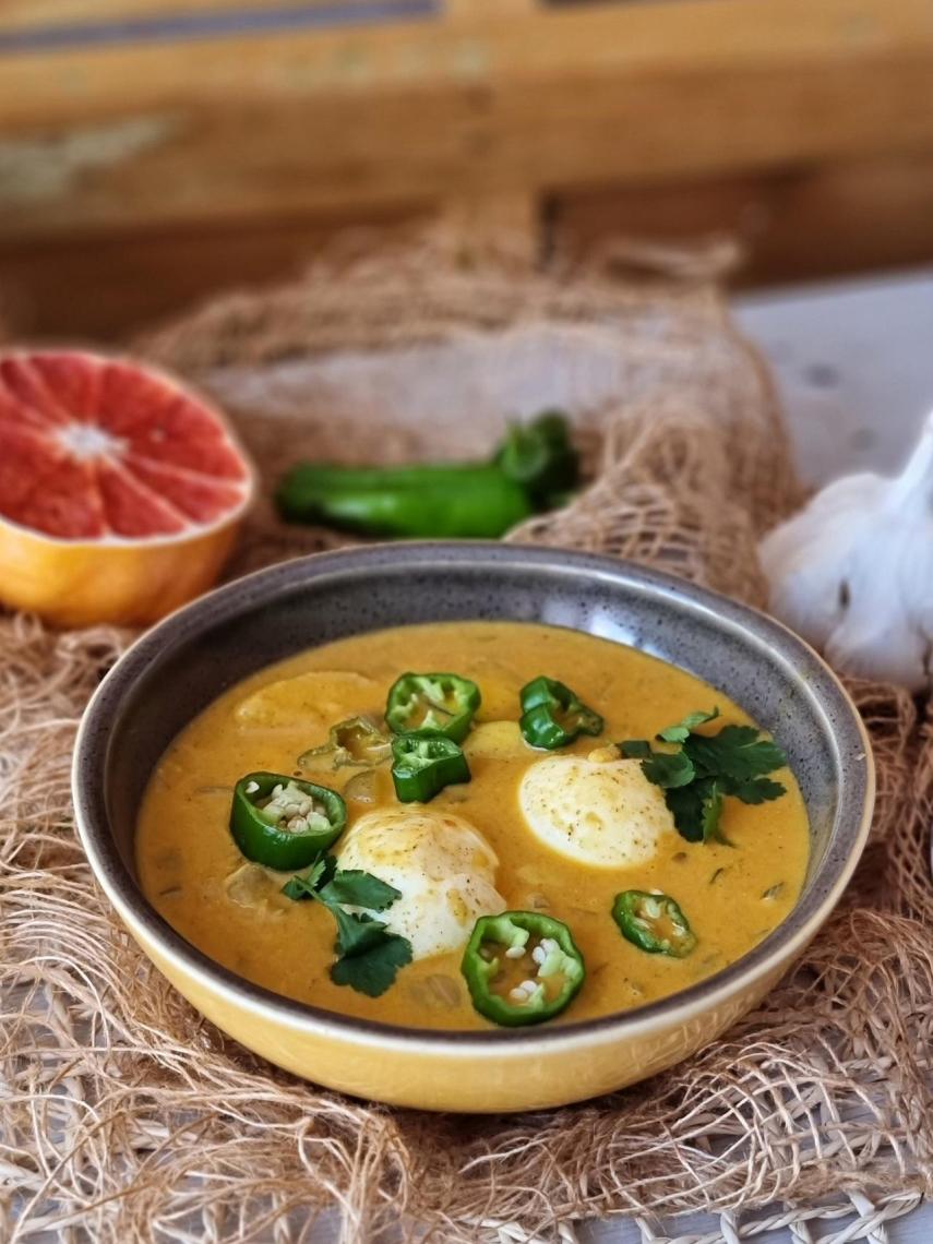 Descubre todos los sabores del sur de la India con este curry de huevo aromático y delicioso, con leche de coco y especias para acompañar con arroz o pan plano.