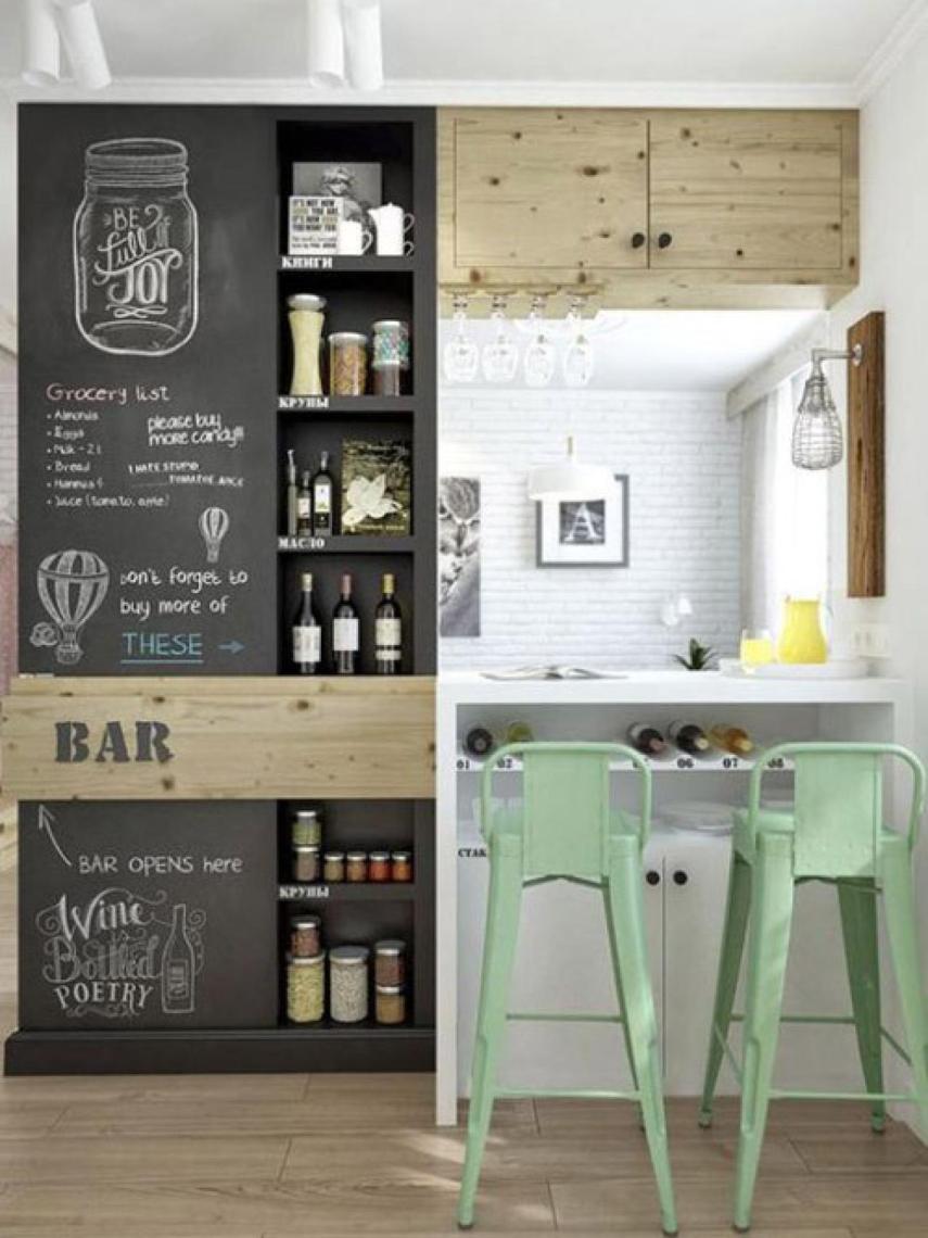 Pizarra en las paredes de la cocina