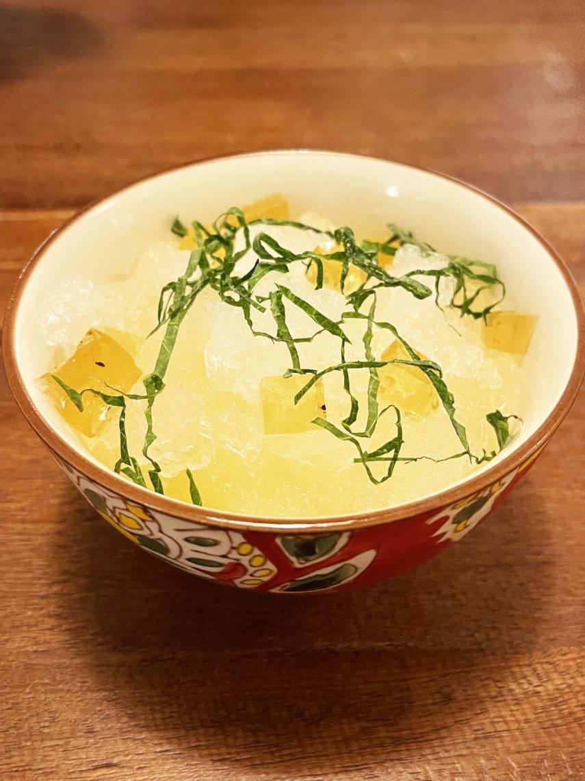 El final perfecto lo ponen postres como su kakigori, el tradicional helado de hielo japonés, que aquí elaboran de pomada menorquina con crema de limón y dados de ginebra Xoriguer, la pavlova o un irresistible coulant de almendras con helado de turrón.