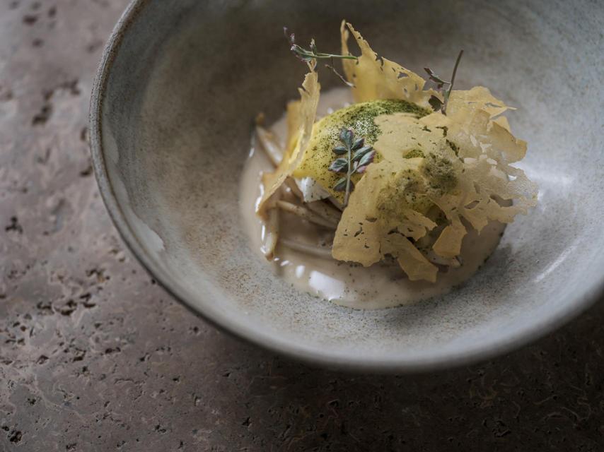 Trabaja con productos estacionales, como los brotes de lúpulo, con una temporada muy corta, muy difíciles de conseguir y considerados como la verdura más cara del mundo, pero también con espárragos de Sijsele o con un rodaballo que preparan a la plancha y terminan en sala con binchotan. Incluso dedica un pase del menú al pan y hay alguna sorpresa que sigue en otro espacio que no desvelaremos, porque es mejor descubrir por uno mismo.