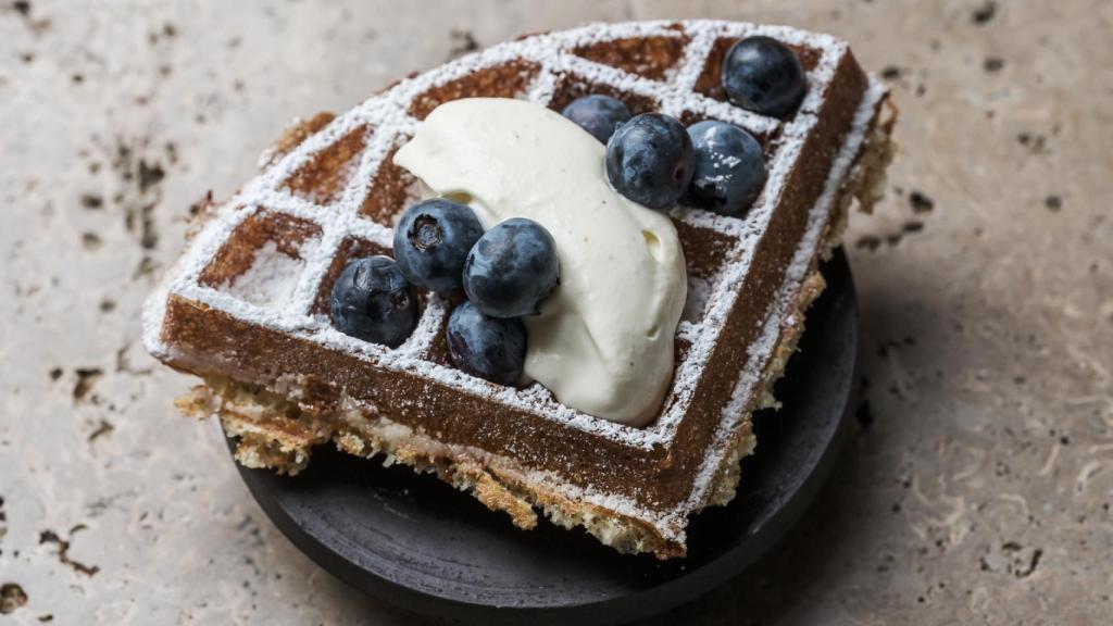 ¿Sus postres? 'Sweet memories' o su forma de recordar su infancia con un gofre, tan belga como él mismo, una receta perfeccionada a lo largo de las generaciones, tomando como base la misma que preparaba su abuela. Los sirven con crema chiboust de flor de naranja y arándanos.