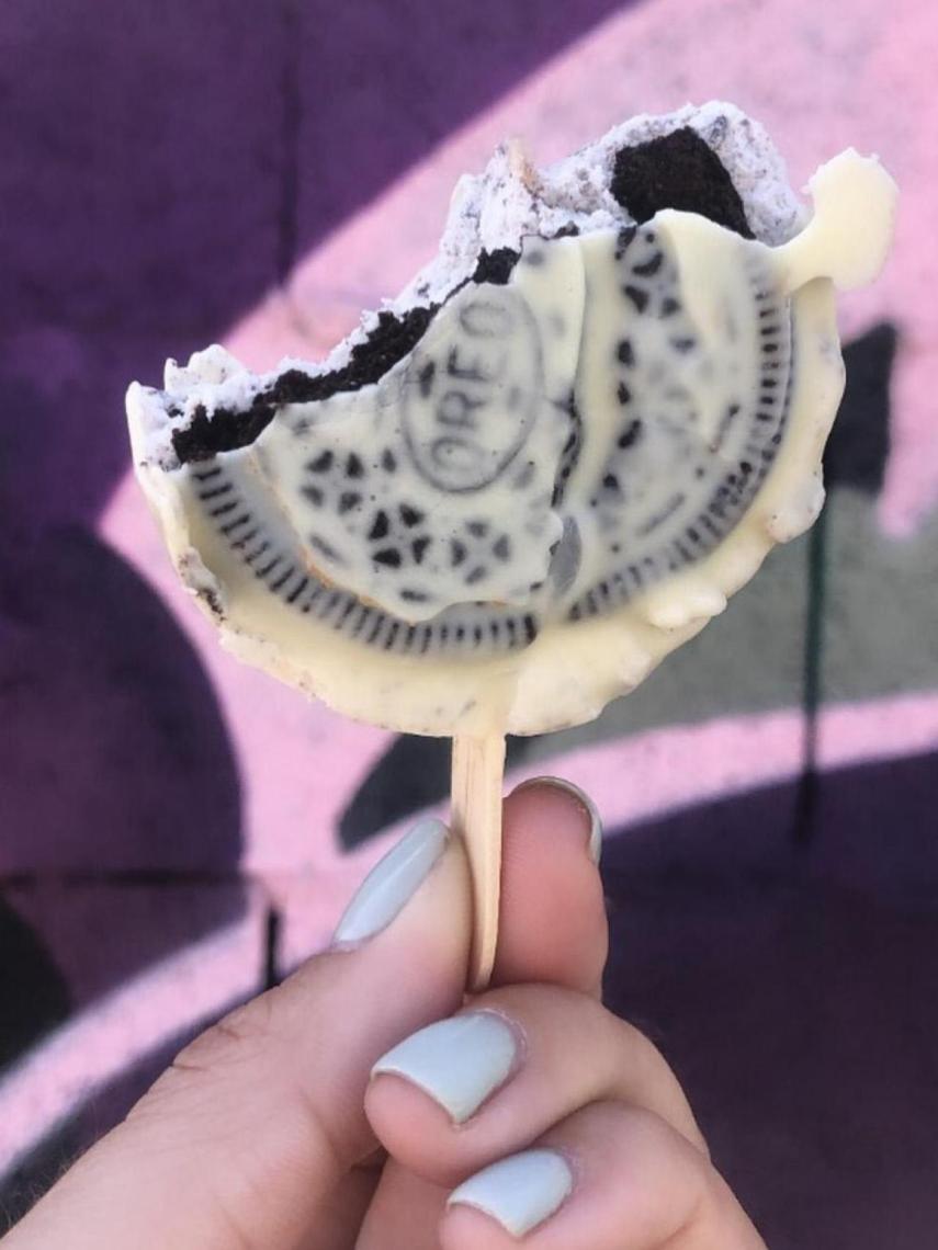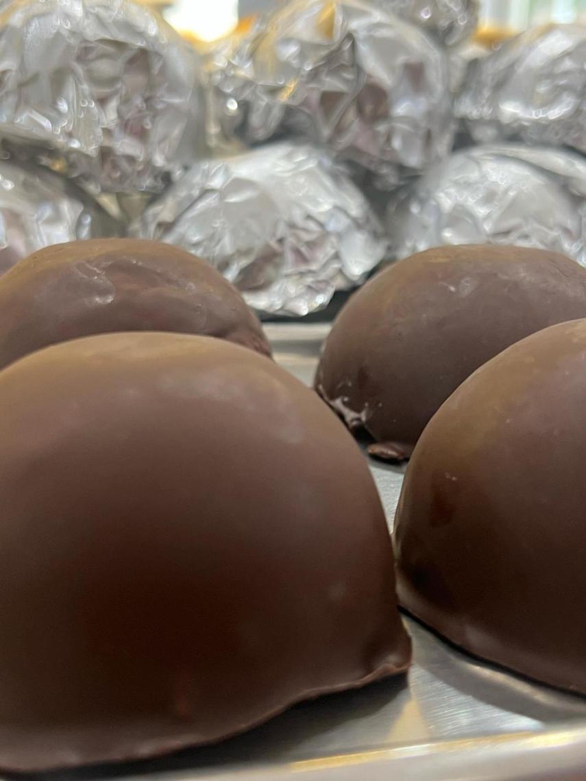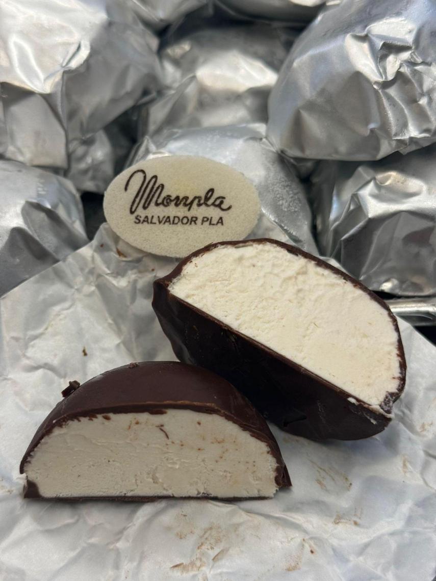 La primera fue la clásica, de nata con cobertura de chocolate con un 60% de cacao, como las que había venido elaborando Puli, llegando a crear una marca con su nombre y repartiéndolas por toda La Safor. Pero con ella llegaron muchas más, como la que les preparaba en casa con chocolate y praliné de avellana que recuerda al Kinder o la castaña de Oreo, para la que utilizan esta popular galleta, que recubren con chocolate blanco.