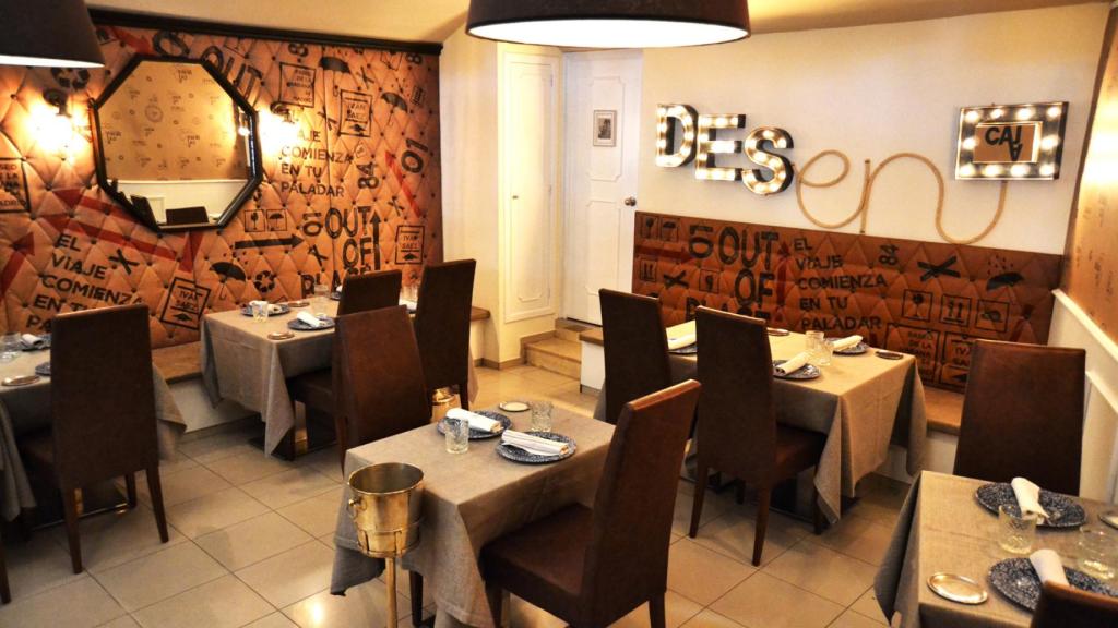 En cuanto a la estética del local, con capacidad para 40 comensales y una barra ideal para esperar mesa con alguna de sus 15 referencias por copas, Desencaja es especial y personal, representa esa caja de cartón que cuando éramos pequeños podía convertirse en cualquier cosa, esa caja con la que de niño soñaba el chef y que ahora hace viajar al comensal muy lejos a través de la fantasía de Julio Verne y de una cocina clásica, elaborada con el mejor producto, con unos acertados toques de autor, en la que se ve la evolución y no faltan las sorpresas, los inesperados sabores, las cuidadas presentaciones ni los detalles de principio a fin.