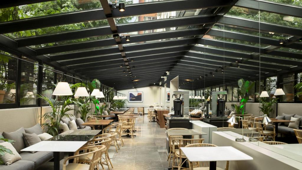 La integración de vegetación y la abundante luz natural le dan un aspecto de pequeño oasis en medio de la vorágine de la gran ciudad, un remanso de paz para disfrutar de una comida tranquila. Este diseño tan actual se integra a la perfección con la herencia clásica del edificio en el que se ubica consiguiendo así espacios sofisticados pero modernos, que se entrelazan entre ellos e invitan a descubrir rincones exclusivos.
