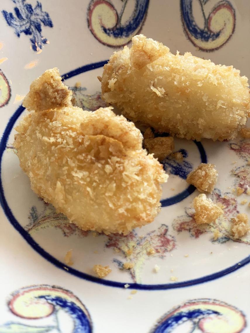 En nuestra visita probamos diferentes cosas de su carta, donde todo suena apetecible. Arrancamos con su croqueta de jamón ibérico, con membrillo y coronada con torrezno, un fino crujiente que aportaba un punto más que agradable. El interior de la croqueta era muy cremoso, a la par que con cuerpo y el bocado en conjunto era una apuesta ganadora. Seguimos con un tigre hecho croqueta, para el que se habían servido de clóchina autóctona, en vez de mejillones y a la que añadían salsa de chili dulce. Nos sorprendió muy gratamente la forma de ensamblar algo tan de aquí, con algo típico asiático.