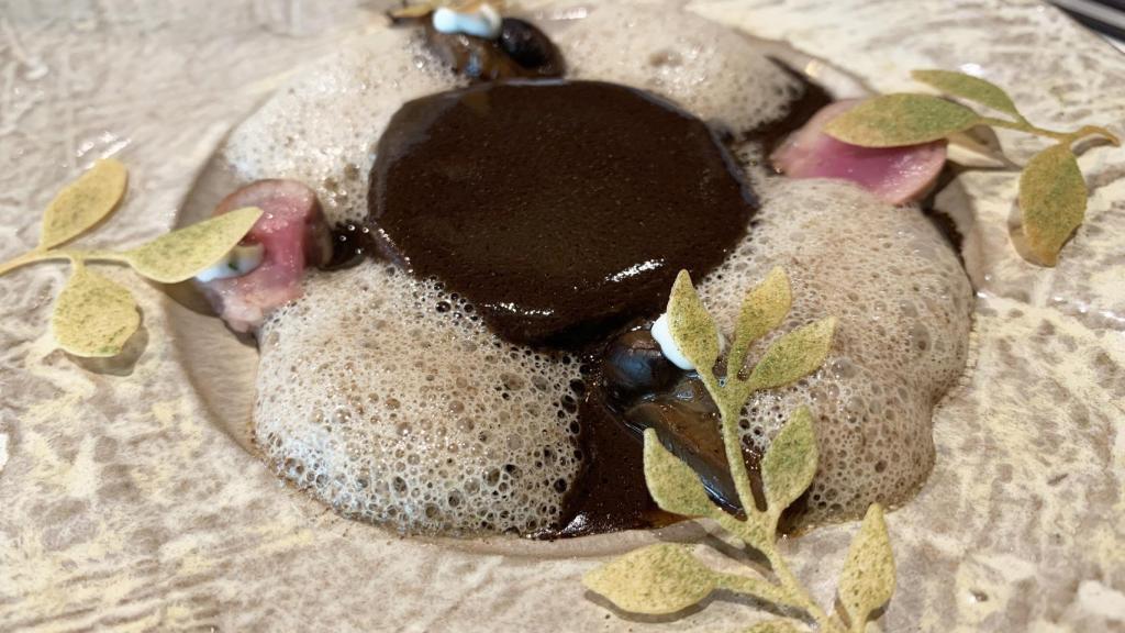 Le sigue una buena raya a la mantequilla negra. Un plato típico de la cocina francesa, que aquí cocinan con tinta de calamar, alcaparra y raïm de pastor, siempre volviendo a la tierra.