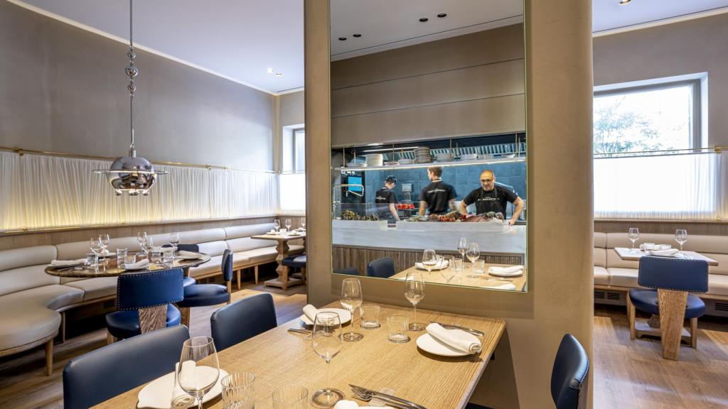El nuevo Bistronómika crece en espacio y en confort para el comensal. La sala ahora es más cómoda y se preside con la cocina a la vista y un escaparate donde se muestran las capturas del día y lo que habrá en el menú.