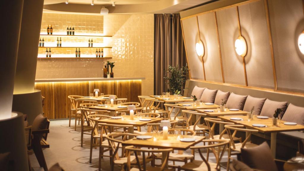 El espacio concebido por María Villalón, trata de evocar esa sensación de atmósfera cálida, de hogar mediterráneo, rural y familiar, a través de maderas y elementos naturales, sin nada que distraiga al comensal, sino más bien creando un espacio limpio y vanguardista.