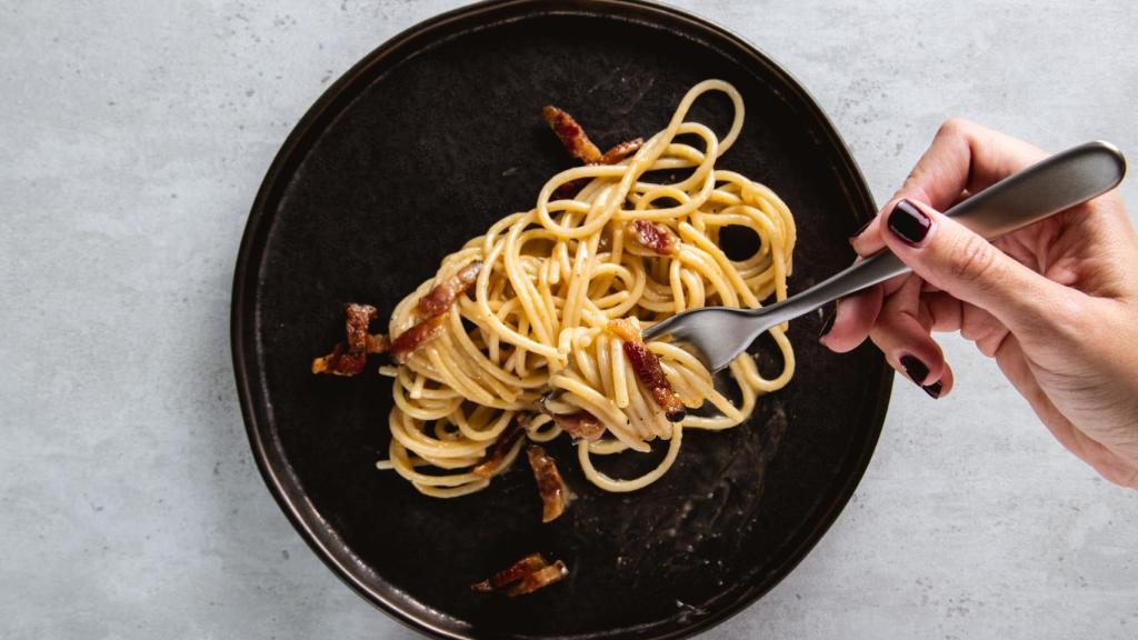 Las pastas son unas de las estrellas de la casa. Encontrarás recetas típicas y reconocibles, como su carbonara clásica (14 euros), que preparan con yema de huevo, guanciale y queso pecorino, siguiendo la típica receta del Lacio. Imprescindibles son también sus spaghetti (19 euros) que mantecan con una crema de Parmesano en cocina. Una vez cocidos, salen a la sala, donde el plato se termina en una rueda de queso, esta vez de Grana Padano. A la vista del comensal, añaden brandy a la rueda de queso, lo flambean y vuelven a mantecar la pasta, sirviéndola en el plato con un poco de pimienta negra.