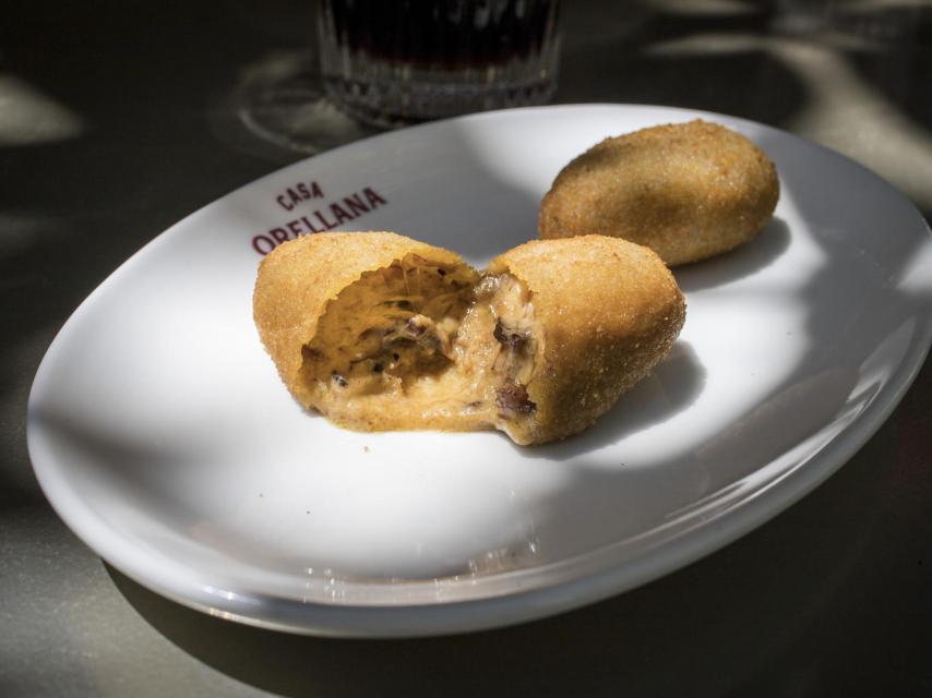 Para elaborar las croquetas, que en este caso son de rabo de toro, preparan un guiso que cuece durante toda una tarde, que más tarde desmigan y unen a la bechamel. ¿El resultado? De campeonato, cremosas y muy sabrosas. No le quedan a la zaga la corvina, que maceran al ajillo y sirven con un pil pil muy suave y ajo frito en láminas, ni tampoco un contundente mollete de pringá de cocido.