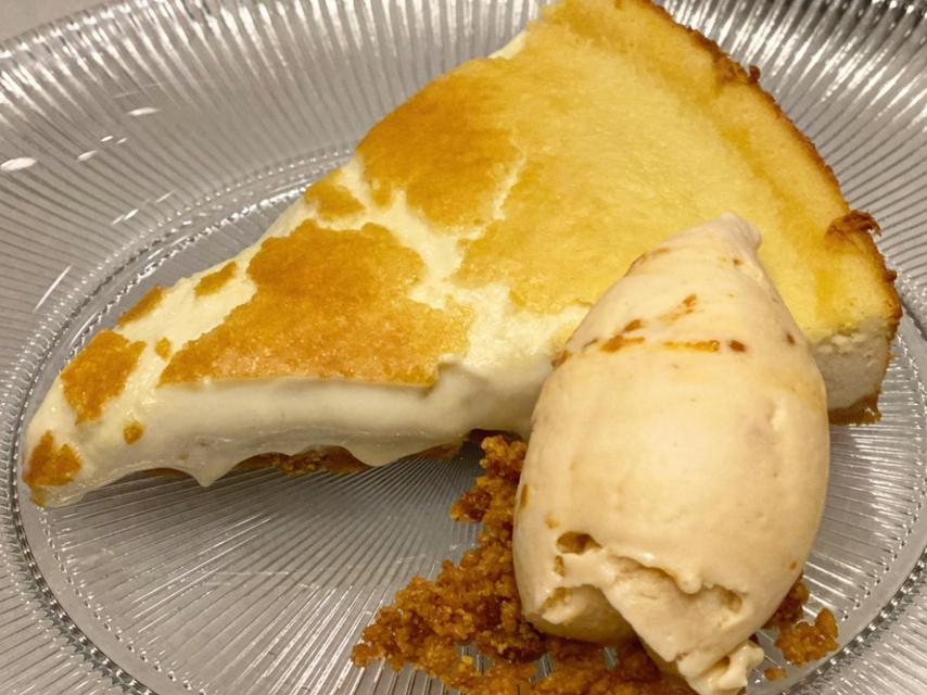 De postre plantean diversas elaboraciones, como una tarta de queso caramelizada o una particular visión del tradicional pan con chocolate, para el que elaboran una ganache de chocolate y sal, que presentan entre pan crujiente, aderezada con AOVE.