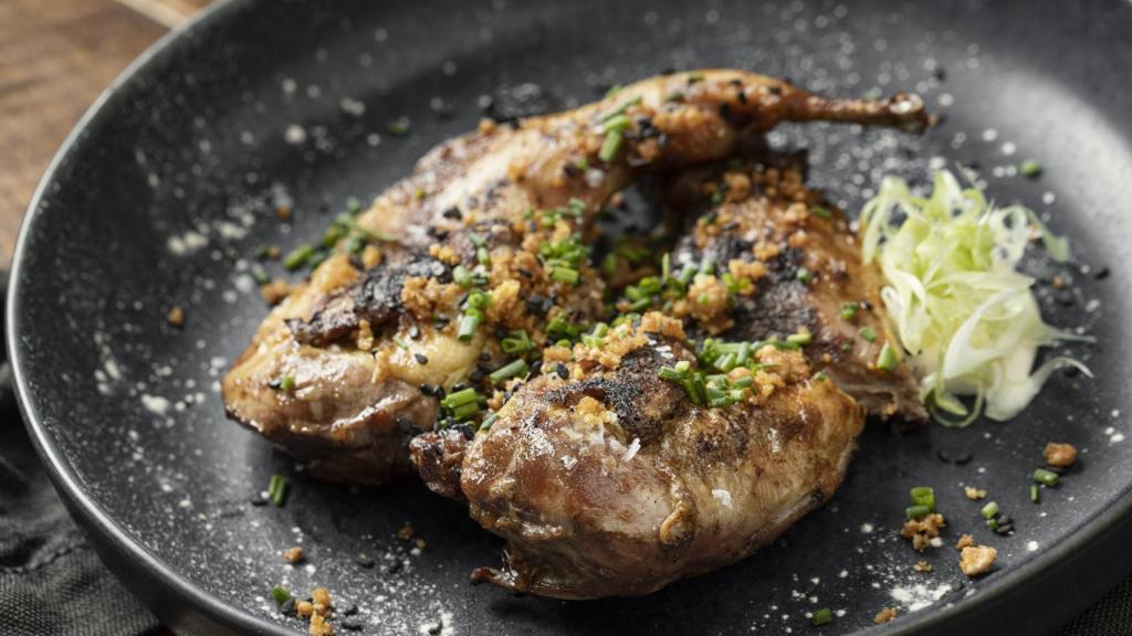 Hay mucha mano de guisandero, como la que se percibe en sus callos, melosos y con un punto picante casi adictivo o con un arroz con navajas a la brasa con pilpil de almejas. Mención merece el apartado de parrilla, del que disfrutar de platos suculentos como codorniz a la brasa con migas de pastor o una fantástica pluma de cerdo ibérico con adobo de orza, que cocinan a la llama y sirven acompañada de pimientos, rúcula aliñada y unos panecillos, para que sea el propio cliente el que se elabore un bocatín con ellos.