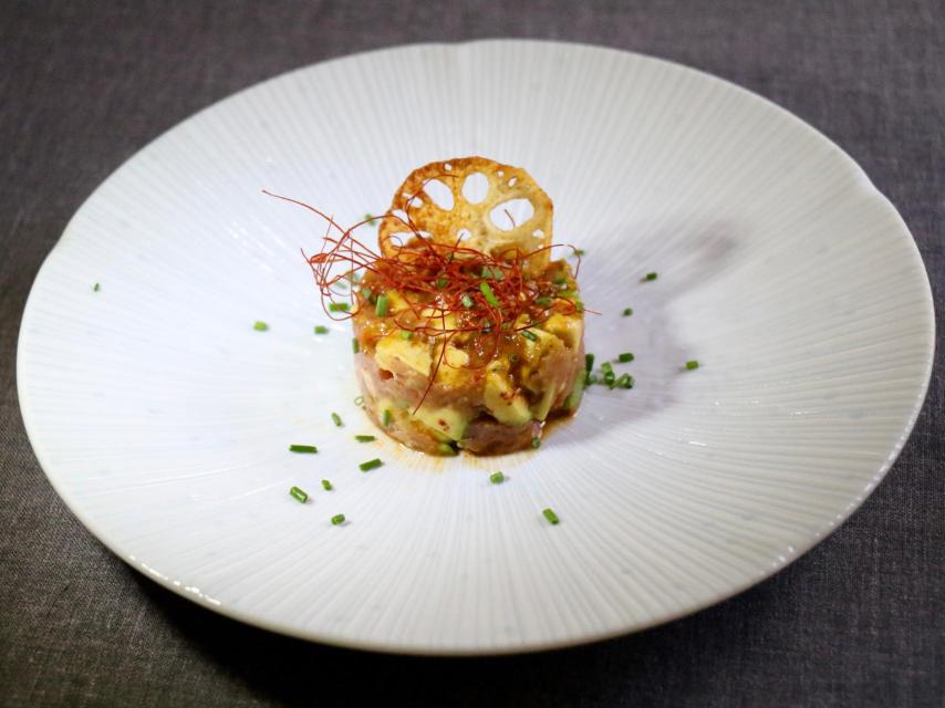 El clásico tartar de atún aquí adquiere nueva dimensión con el Maguro Yutke, un tartar con aguacate y salsa Yutke, es una salsa inspirada en Corea, ligeramente picante con aceite de sésamo y miso rojo, que terminan con perejil y láminas de alga nori.