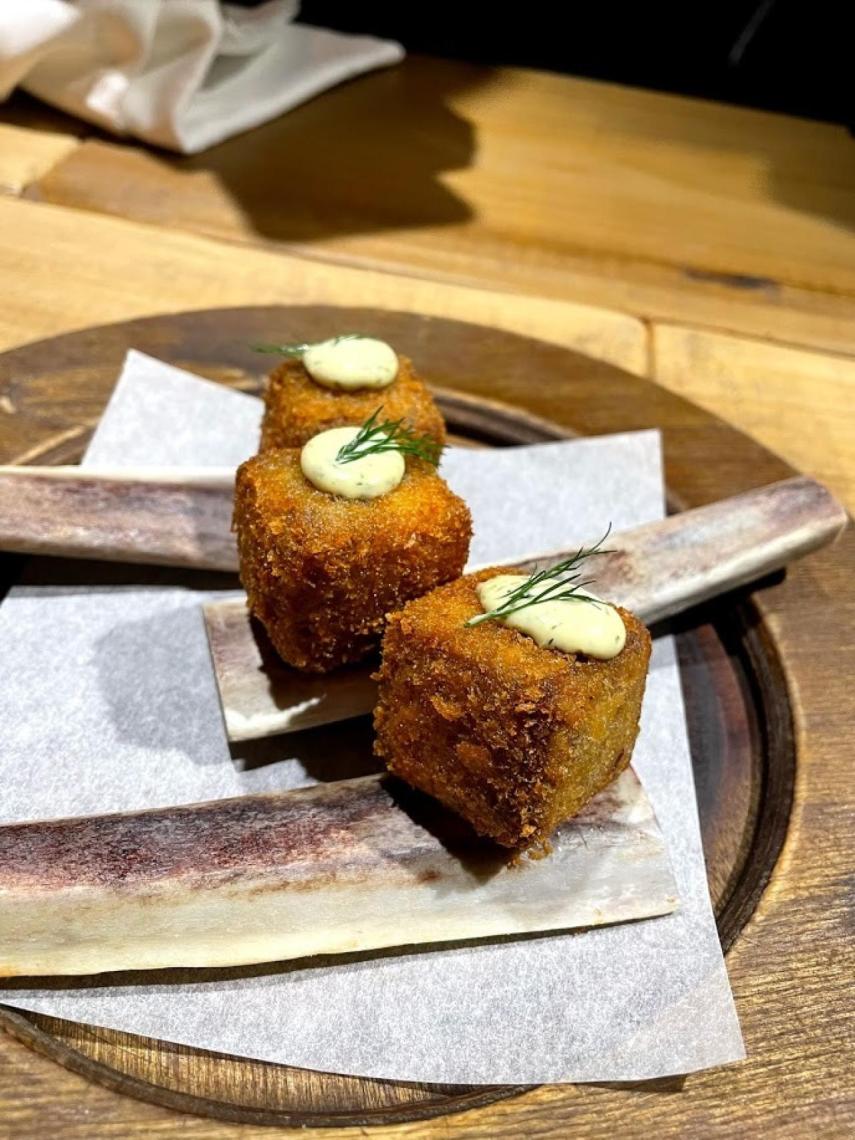 Un plato que nunca habría imaginado en una parrilla argentina son las croquetas, y aquí están riquísimas. Se elaboran con cortes de carne a la parrilla y una bechamel en poca proporción, que aún así les da mucha jugosidad. Pero sobre todo destacan por su intenso sabor.