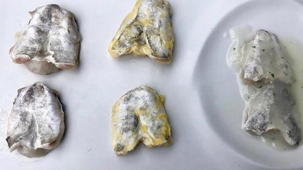 Para empezar, la sopa de pescado, que ya elaboraba María Rosa Larrañaga y que hoy mantiene la misma laboriosa receta. Los amantes de las kokotxas, aquí tienen que pedirlas. Se sirven como una declinación de la pieza en tres texturas. La de mayor tamaño se prepara en la brasa, lo que le aporta un delicioso sabor a humo. La siguiente se reboza en huevo y la tercera se acompaña de una suave salsa verde, que seguro rematan mojando pan.