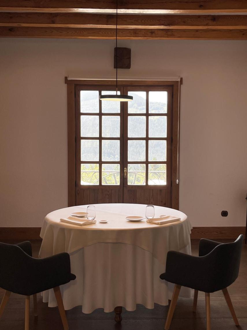 De la planta baja, pasamos a la primera planta, que es donde se instala el comedor. Una sala con mesas amplias, vestidas con mantel y ventanales que enmarcan el precioso paisaje que circunda Garena. Aquí pasamos a la zona de la bodega y sobre una mesa alta, tomamos el siguiente aperitivo. Una vez más la memoria entra en juego, en este caso rememorando aquellos tiempos en los que tras bajar del monte, los lugareños iban al río. Allí cazaban caracoles y cangrejos, hacían un fuego y se los comían.