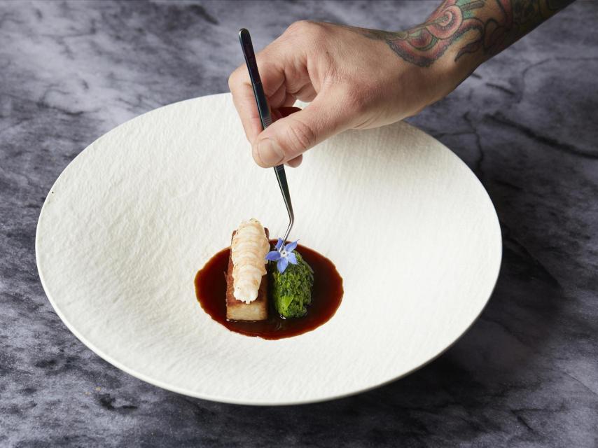La idea es que la parte baja sea más casual y la de arriba gastronómica. Por el momento, el menú degustación funciona los fines de semana y entre semana, en la parte alta del caserío se sirve un menú de mercado (35 euros) que cambia prácticamente a diario y en el que se puede degustar la temporada.
