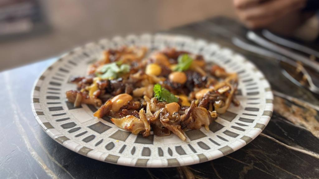 Nosotros hicimos un menú muy largo, empezando con los rollitos de steak tartar, las gyozas de pollo y el dim sum de morro y manitas, siendo este el que más destacó de todos. A esto le siguió un arroz chinorris (salteado con verduras), unos mejillones «a la tela marinera» (que no es más que los mejillones con curry rojo que hemos visto una y otra vez en tantos sitios), una oreja con mayonesa de mango y un «luisito», un montadito hecho con pan hojaldrado de mantequilla tipo cruasán relleno de guiso de curry indio, que aunque es una bomba se trata de los mejores platos de la carta.