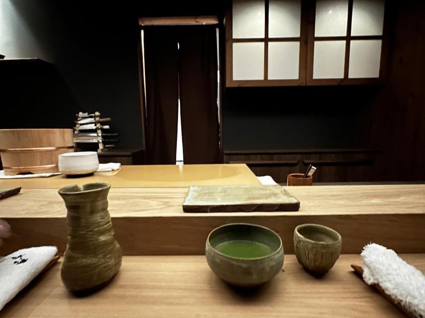 Así que ahora en Kiro, las bebidas que se ofrecen son agua y un té matcha con arroz tostado, ambos sin coste añadido al precio del menú y que rellenan cada vez que el comensal así lo desee.