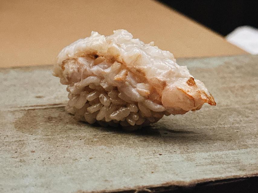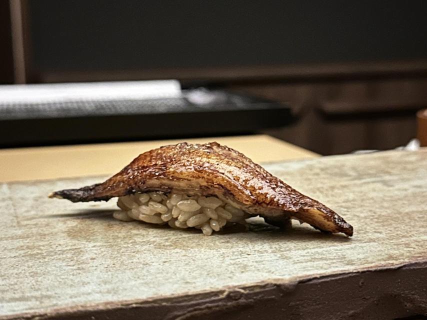 Con ellas, va dotando de diferentes sabores a los pescados, apenas aderezados por algún picante de la Indina, China o incluso La Rioja. Ni siquiera utiliza ya wasabi, para no enmascarar ninguno de los sabores. Hamachi, diferentes partes de atún rojo, dorada, salmón de Noruega, calamar, cigala, gamba y nada menos que seis diferentes formas de preparar la anguila, uno de sus productos fetiche, pasan de sus manos, a las nuestras. Porque según afirman los mejores itamaes del mundo, la mejor forma de comer los nigiris es así, cogiéndolos con los dedos.