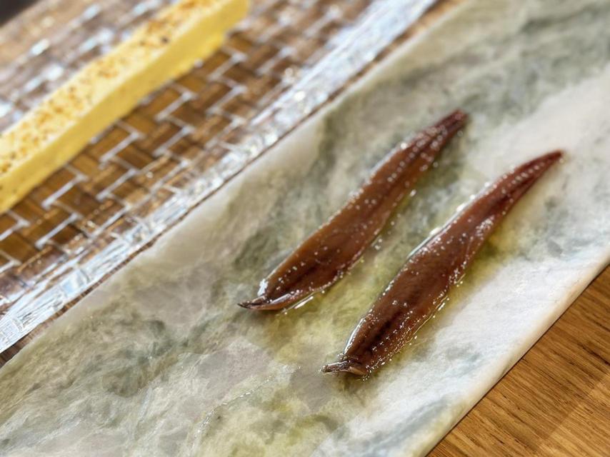 ¿Qué se come entonces en La Cigaleña? Es casi obligatorio empezar con la famosa gilda de la casa, un clásico que combina aceituna, piparra y anchoa de una calidad inigualable. La mantequilla ahumada, hecha en casa, es el acompañamiento perfecto para unas anchoas del Cantábrico que se pueden pedir por unidades. El steak tartar de solomillo de vaca, la gamba roja a la brasa que siempre está en carta, o las piparras fritas son algunas de las especialidades que destacan en el menú.