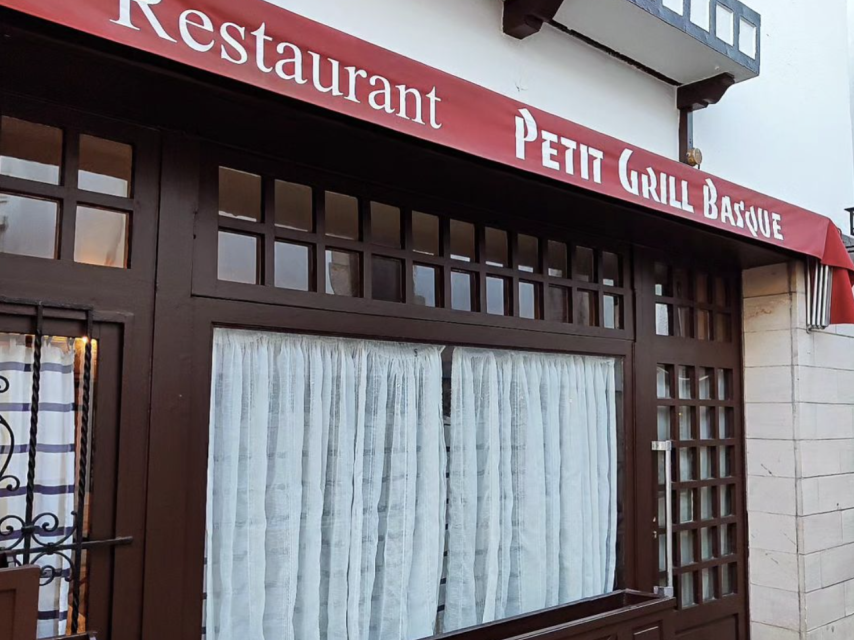 En Petit Grille Basque, la cocina reinterpreta platos tradicionales, algunos vascos, con ingredientes locales. Y es muy cambiante. En su carta —que se escribe en francés y en vasco— y sugerencias, puede haber desde la tradicional gilda, hasta unas piparras de temporada fritas, pasando por un plato de matraila (careta) de cerdo kintoa. También un steak tartar clásico, el pescado crudo del día, atún en manteca o una caponata con anchoas de la conservera Maisor.