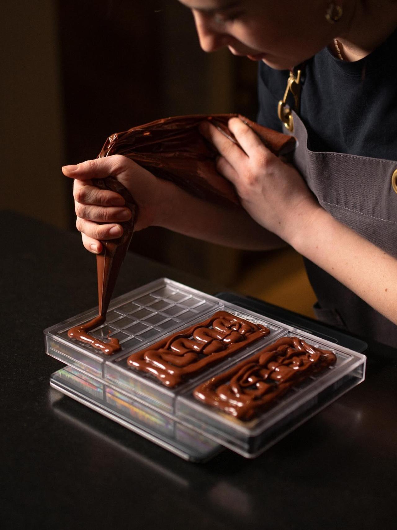 El chocolate es una obsesión para René Frank y su equipo. No se conforman con comprarlo, sino que lo producen desde el grano hasta el producto final y lo hacen allí mismo, en su particular 'fábrica de chocolate' en la cocina del restaurante. "El chocolate es uno de esos productos con los que realmente puedes jugar. Puedes llevarlo a lo dulce, pero también a lo salado, ácido o incluso amargo", explica.