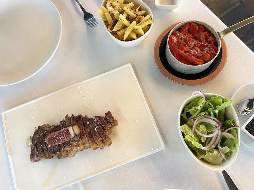 Hay más. El entrecot de frisona con 45 días de maduración tiene el punto perfecto de grasa infiltrada. El solomillo con patatucas y pimientos es una opción menos intensa, pero igual de sabrosa, al que se le puede añadir un puntito más con queso Bejés-Tresviso.