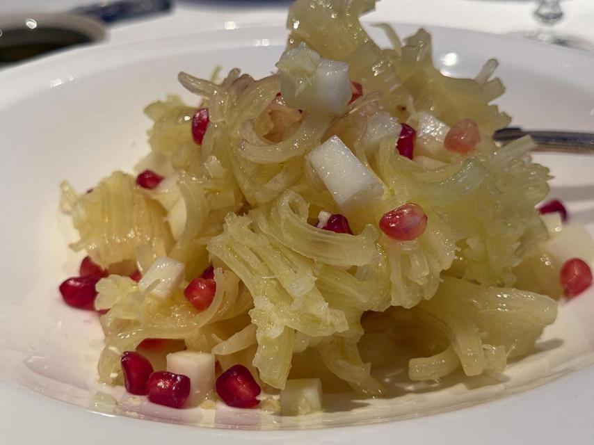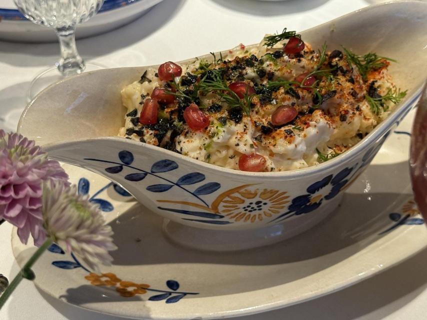 La ensaladilla de manzana es uno de esos platos. Parte de una receta familiar, reformulada con patata y manzana Fuji. La fruta llega de Soria, de la explotación de su cuñada.