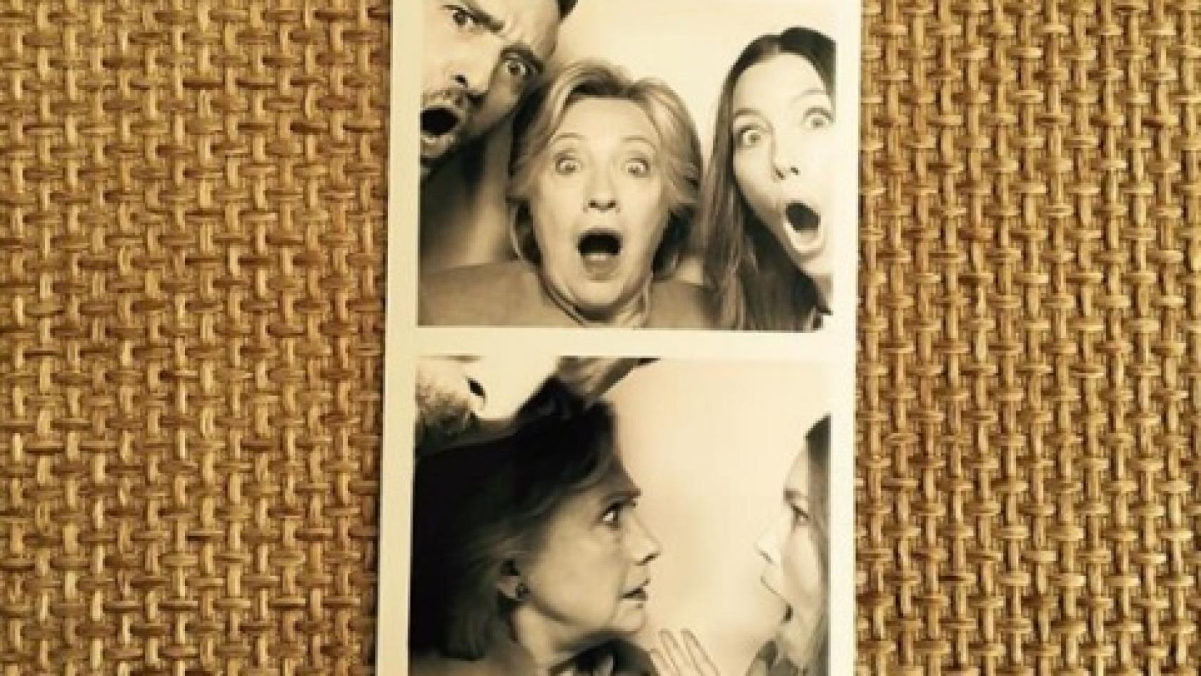 La candidata demócrata Hillary Clinton sabe que tiene el respaldo de muchas rostros conocidas de Hollywood. Por eso no duda en plantarse junto a las estrellas Justin Timberlake y Jessica Biel en un fotomatón y posar con sus caras más graciosas. Una novedosa forma de hacer campaña.