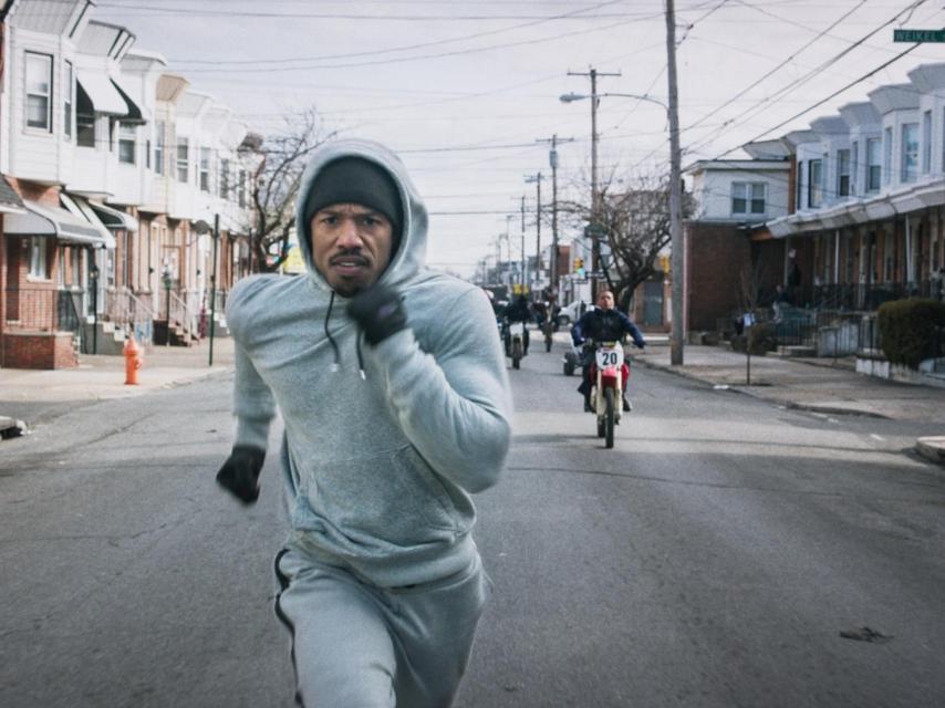15. Aquí no oirás Gonna Fly Now de Bill Conti, sino el rap de Meek Mill mientras Adonis corre con motoristas haciendo cabriolas. Nuevos tiempos, misma clase.